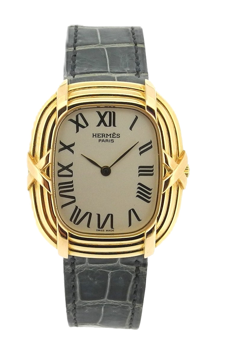 -Bracelet en cuir de crocodile gris-vert, boucle ardillon en plaqué or