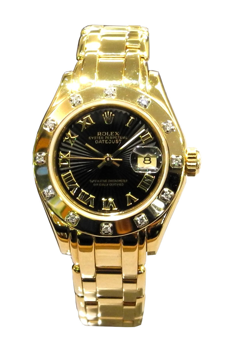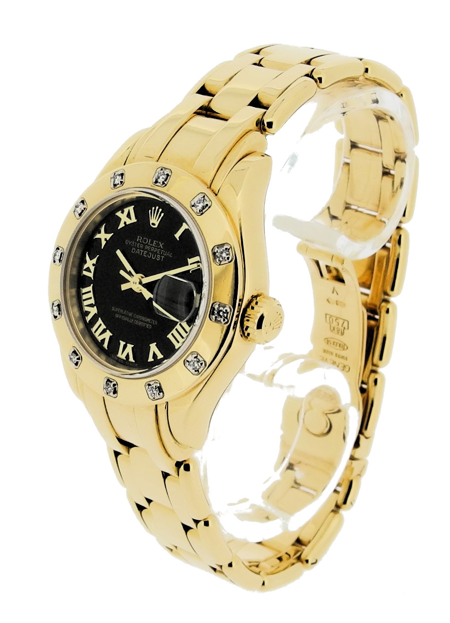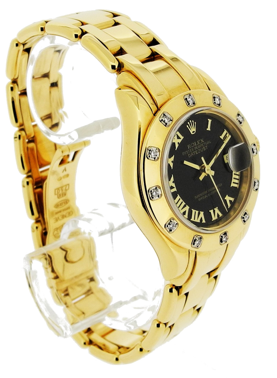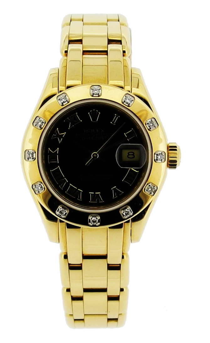 -Boitier de 29 mm en or jaune 750, lunette sertie de 12 diamants